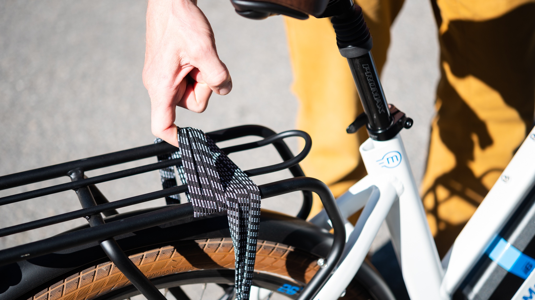 The components attached to the Metro all worked very well for us during testing and enhanced the bike's ride quality. The 8-speed Shimano drivetrain performed flawlessly, and we especially liked the trigger-style shifters. The Tektro hydraulic disc brakes are paired with 180mm rotors, which felt very powerful and had no issues controlling the speeds and weight of this heavy e-bike. The Schwalbe Big Ben tires were fast-rolling and provided predictable traction on firm surfaces, plus we liked the retro-inspired tan color. Front and rear fenders, head and taillights, and a stout rear cargo rack only add to this bike's user-friendliness and versatility. The rear rack even comes with a quality bungee for strapping down your things.