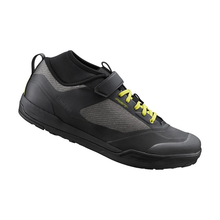 Shimano's AM7 is designed as a flat pedal driver for all-mountain and downhill riders who need a capable do-it-all shoe. In terms of functionality, the AM7 is similar to other all-rounders in our test. Also, it features additions like ankle protection, lace cover, velcro strap, and an upper more suited to wetter and colder climates.