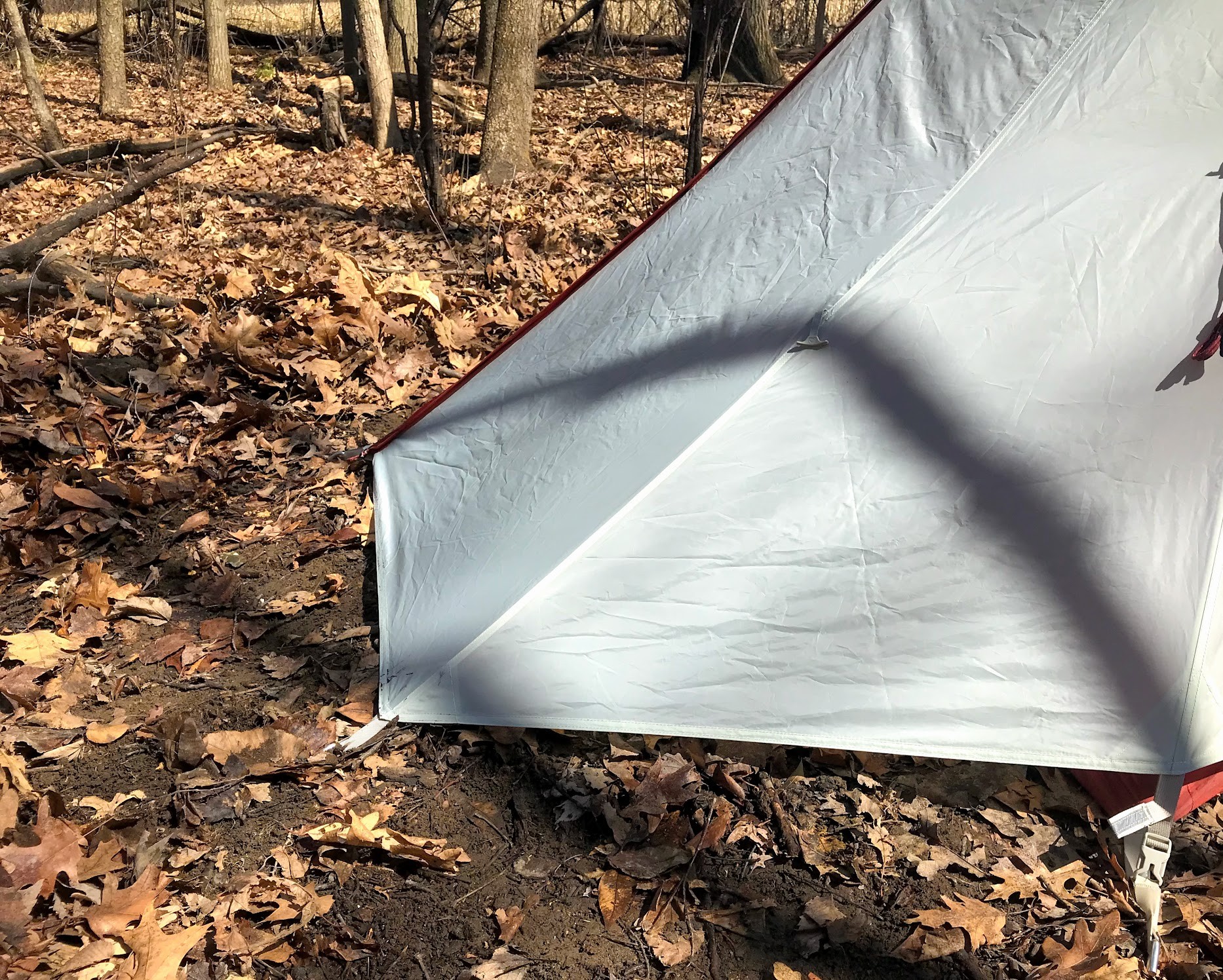 The single door at the head is also small relative to other models with a similar design. Consequently, the vestibule is not large enough for two regular backpacking packs and two sets of footwear (especially if you want to get out of the tent easily).