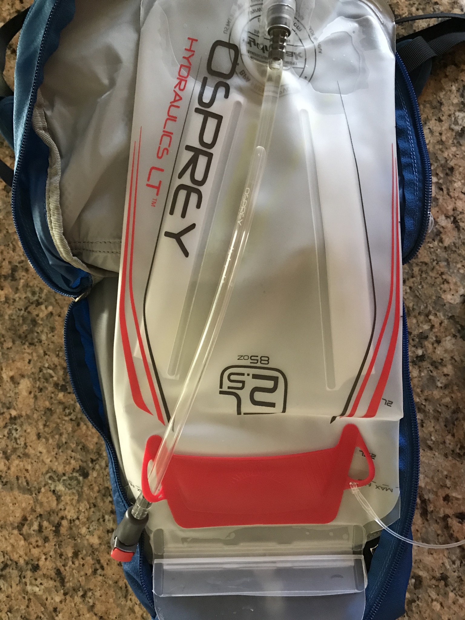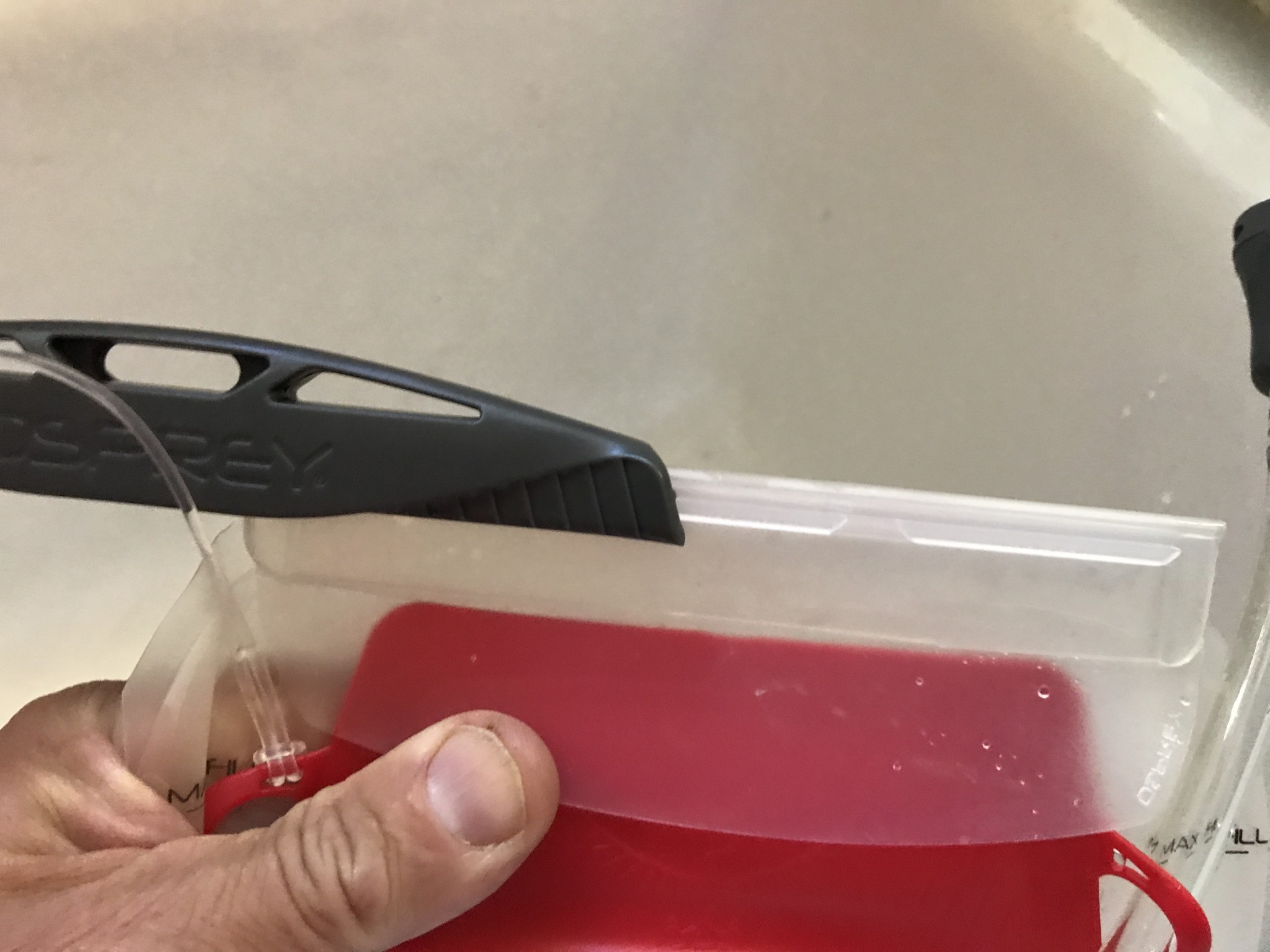 The Syncro 10's hydration bladder, the Hydraulics LT 2.5-Liter features a wide opening bladder that makes filling up no problem. The fully-opening water bladder is similar to the Platypus Duthie A.M. 10 and the Deuter Compact Air EXP 12 in that they all provide complete and easy access for filling up. In shallow sinks, the Pour Shield makes filling easier.