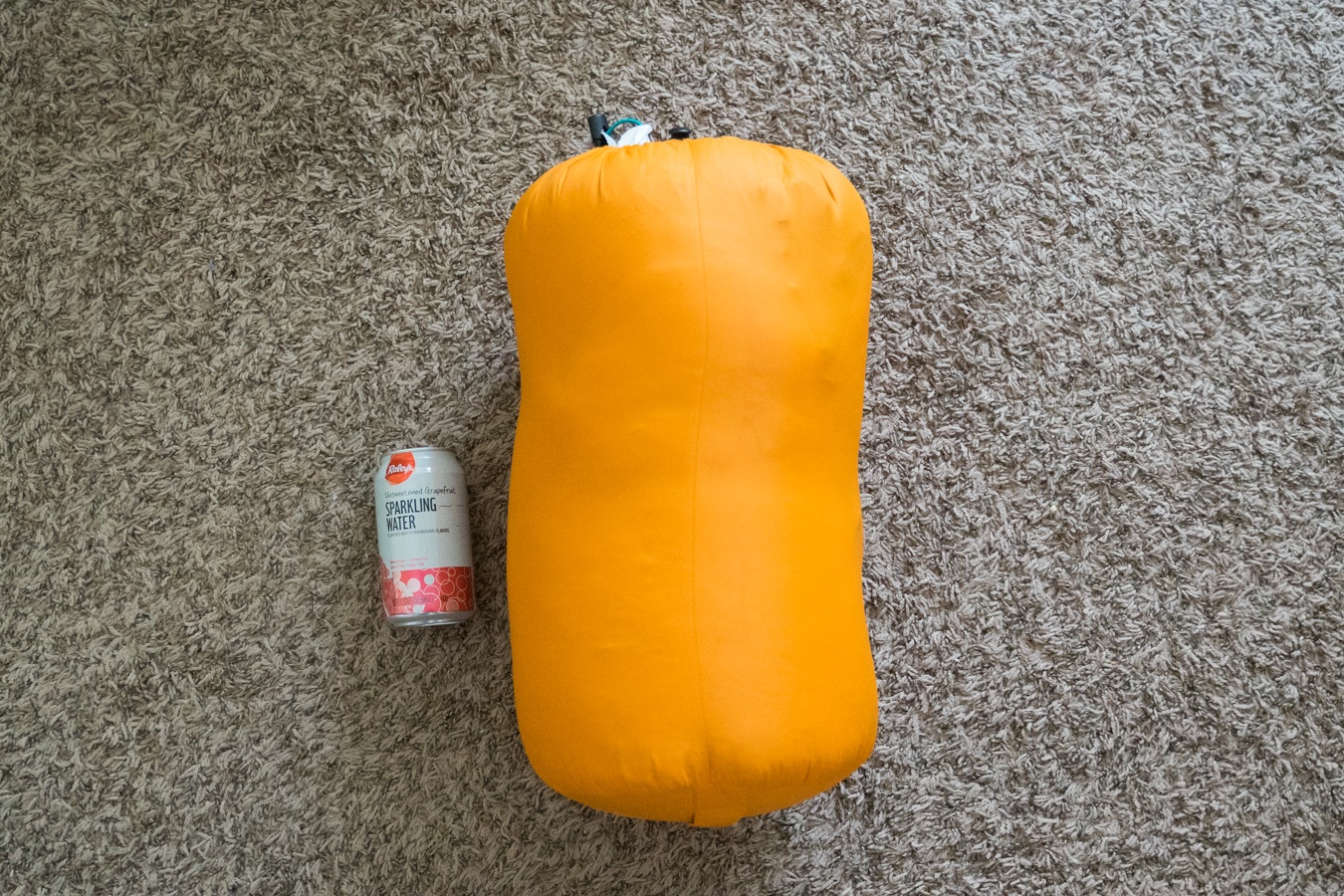 Like weight, packed size isn't one of the Down Time's strong points, but it does pack down much smaller than synthetic bags of a similar price and temperature rating. Its included stuff sack measures 9 x 14", and it can compress a few inches smaller into an aftermarket compression sack with some effort.