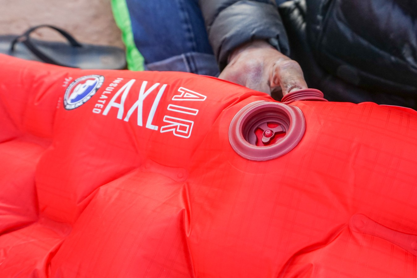 This pad is thick and takes a lot of air to inflate, about 25-30 breaths. Fortunately, the one-way valve is one of the best we encountered, offering little resistance to the air blowing in, and holding airtight, even when the pad is nearly maxed out. The REI Co-op Flash All-Season Insulated takes fewer breaths, but its valve is harder to blow into. The Outdoorsman Lab Ultralight also takes less air to inflate, but our testers found they had to awkwardly pinch the valve to get air in. For deflating, the valve cover has a pull tab you can insert into the air hole and prevent the valve from closing. It's one of our favorite features since it keeps the valve open while you roll up and stuff the pad away. The Flash solves this issue with a heavier two valve system, and the Outdoorsman Lab Ultralight has the same design as the AXL valve with a shorter pull tab that doesn't work as well.