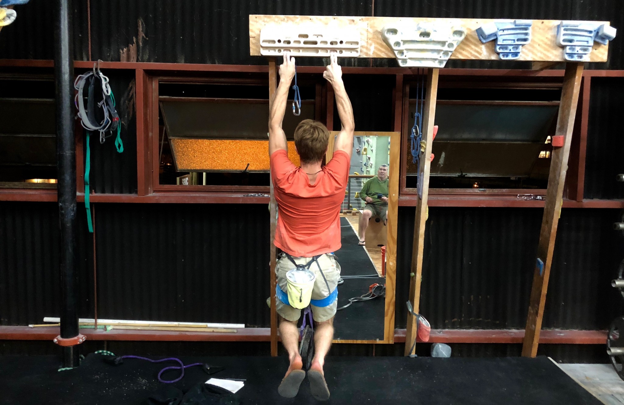 For most people, edges (which we describe as a hold we can put all four of our fingers on) are the foundation for most training sessions. However, that is not the case with this board, which is centered around symmetrical two-finger pockets designed to be used with two arms and a variety of three-finger pockets that most climbers using this board will likely hang from one-armed or one-armed with some assistance.