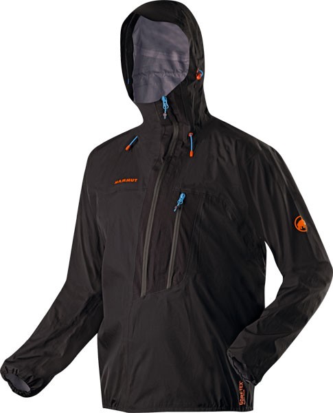 The Felsturm's zipper is the best anorak zipper we tested because the zipper flows smoothly, has a large zipper pull that's easy to grab with gloves on, and angles left of your chin. It's significantly better than the Mountain Hardwear Quasar's zipper. The hood is reasonably good; it covers your chin more than most lightweight shells, adjusts well for having two drawcords (most hardshells have three), but we found that it can be restricting when worn over a helmet. Of our other top rated lightweight shells the Mountain Hardwear Quasar has a better hood for wearing underneath a helmet and the Arc'teryx Alpha FL's hood is better for wearing over a helmet.