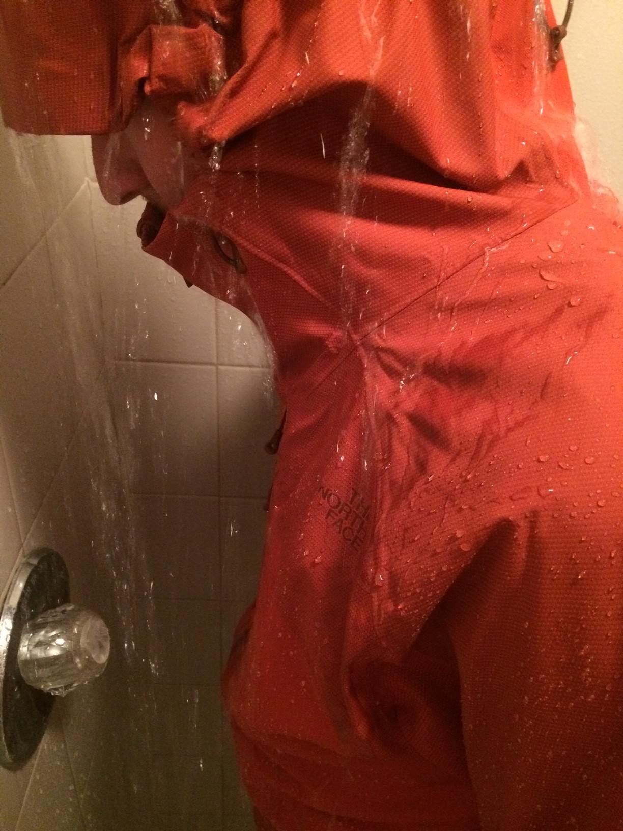 In the shower test we found that the hood of this jacket did not completely protect out face and keep water from running off the sides and trickling down the inside of the collar.