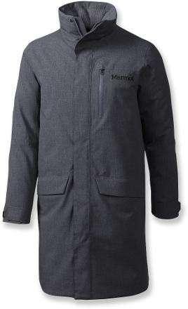 With an urban sensibility and clean stylish lines, this jacket is comfortable in formal situations. The soft collar is easily folded down to reveal the top of a dress shirt or suit jacket, and the neutral onyx and black colors blend in easily with professional attire. This coat offers a similar refined style with a lot more warmth than the Mountain Hardwear ZeroGrand Trench.