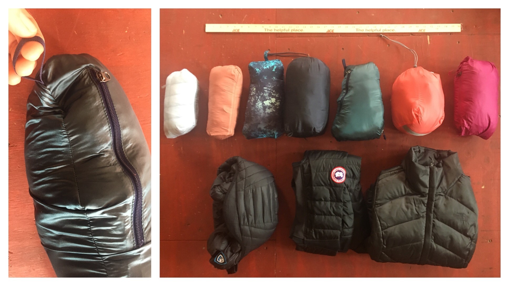 The Quasar was in the middle of the pack in this metric. It was not the smallest but certainly far from the bulkiest. The jacket stuffs into its left-hand pocket and reveals a small carabiner clipping loop so you can clip it to the back of your harness for long rock climbs. We love this feature in down jackets. The shape of the stuffed package was a little long and awkwardly shaped, so it was not our favorite in this review, but we are happy it had the option.