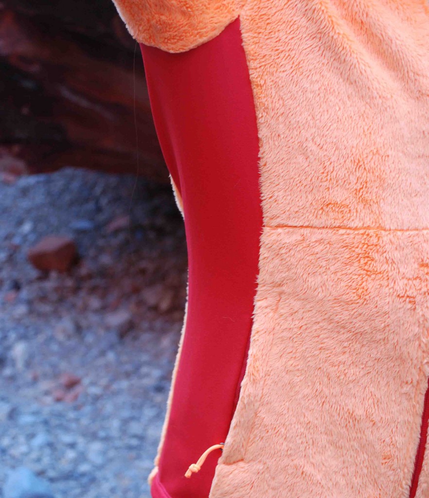 The North Face Tech-Osito Jacket is also exceptionally cozy — wearing this jacket feels like getting a hug from Elmo all day long. You will only want to wear a t-shirt or tank top under this fleece so you can really appreciate its texture and silken feel. The one drawback to the raschel fleece is that you might occasionally find little flakes of the fleece stuck on your base layer, particularly the first few times you wear it, so you may want to wash it once or twice first; that seemed to get the initial fuzzies off the jacket.