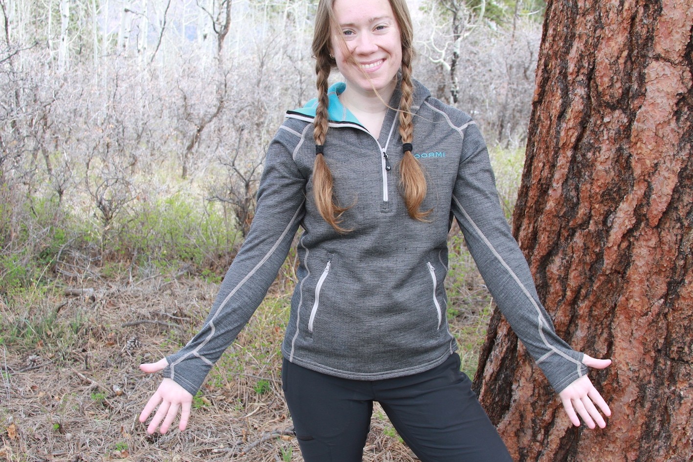 The Voormi High E Hood is a merino wool-polyester blend hoody that offers the best weather protection and warmth of any jacket tested. It features a fitted ¾ zip design with functional pockets and even a ponytail passthrough in the hood. It offers full coverage in the form of a big balaclava to help weather out any storm. Its style is cute and easy to wear in town or while exploring trails in the mountains. Our biggest caveat is the stiff materials that make adaptable fit challenging — especially in the arms.