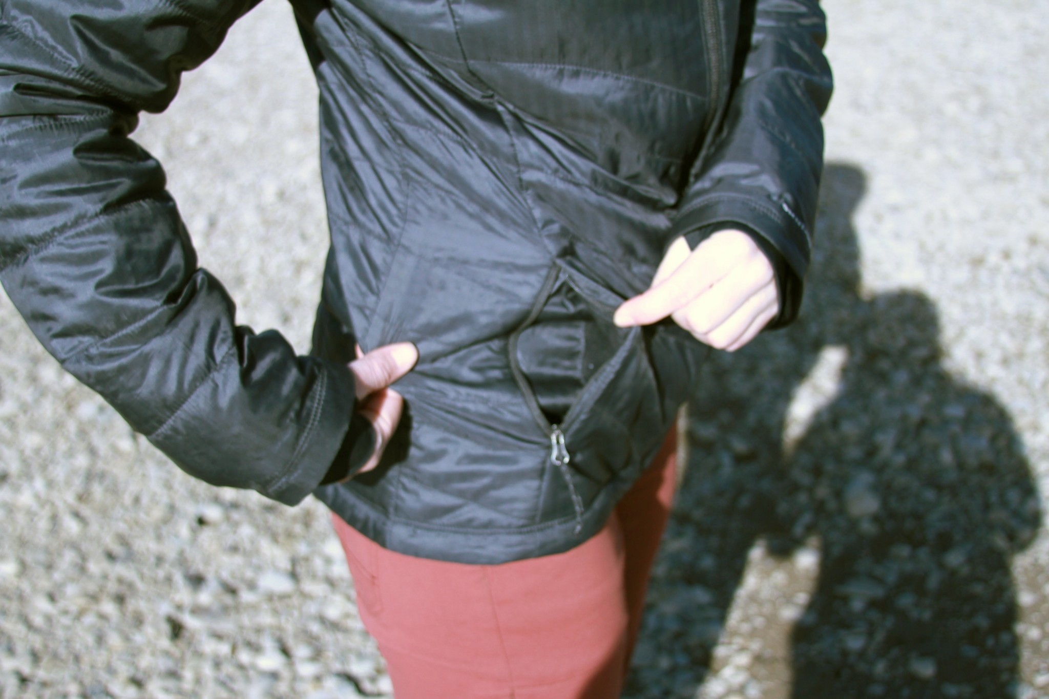 Scoring a nine out of ten in this category, the Mighty Lite Plush has many cute and flattering features with a fit that makes all our testers giggle with happiness. Featuring a continuous face fabric with flattering stitching patterns, this 100% polyester shell is slippery and sleek and receives many compliments on the street. In the front and back, the stitching patterns make a chevron-shape that points inwards. The sides and hood feature a brick style design highlighting flattering aspects of the female body. The jacket slightly pinches in at the waist, with a slight bell at the hem - making it quite flattering for all body types. Also, because the fabric is not super tight or binding, many of our curvier testers preferred it because it did a great job at hiding all sorts of bumps and lumps.