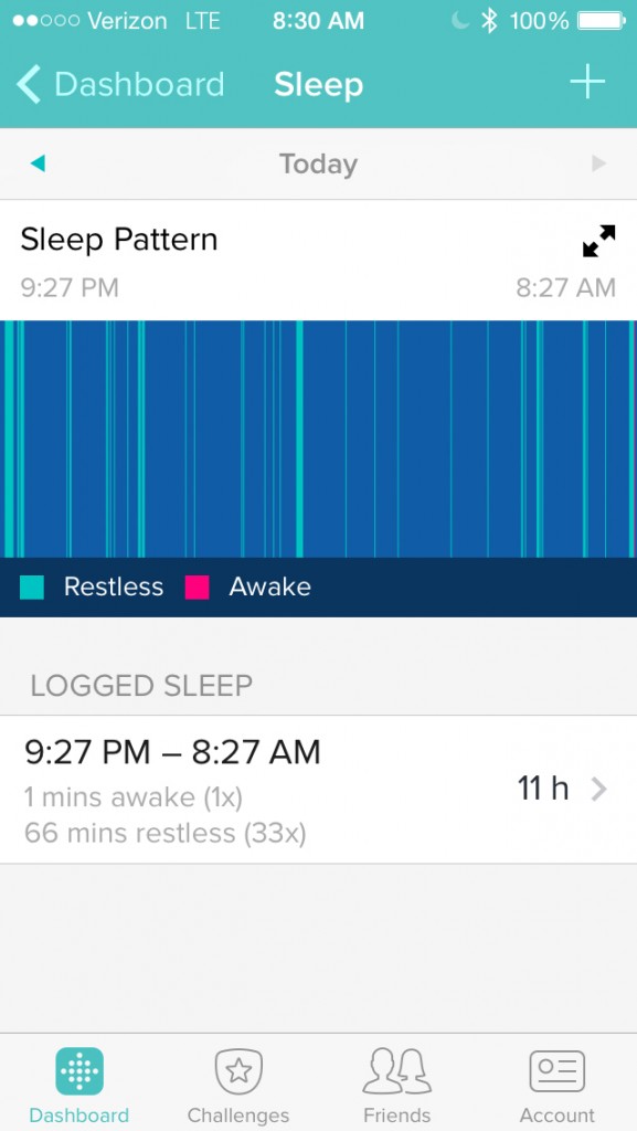 FitBit has been in this game for a relatively long time. In fact, the term FitBit has a bit of traction as the generic word for compact, self-contained activity tracking devices. With this history, the company has clearly refined their data management scheme. Some data is viewable on the small screen on the device while the remainder syncs readily and easily to your phone. Once on your phone, the data makes sense and is easy to compare from one day to the next.