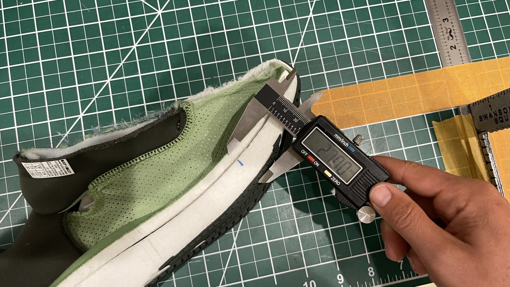 Saucony uses variations of their TPU foam in a variety of shoes to great success. In the Triumph 21, the PWRRUN+ feels soft and uniquely bouncy. With a measured 38mm in the heel and 27mm in the forefoot, this shoe has one of the higher stack heights in the test, and it shows every time you land. There is no bottoming out even on the hardest impacts, and the 11mm drop feels natural with a very slight rocker geometry.