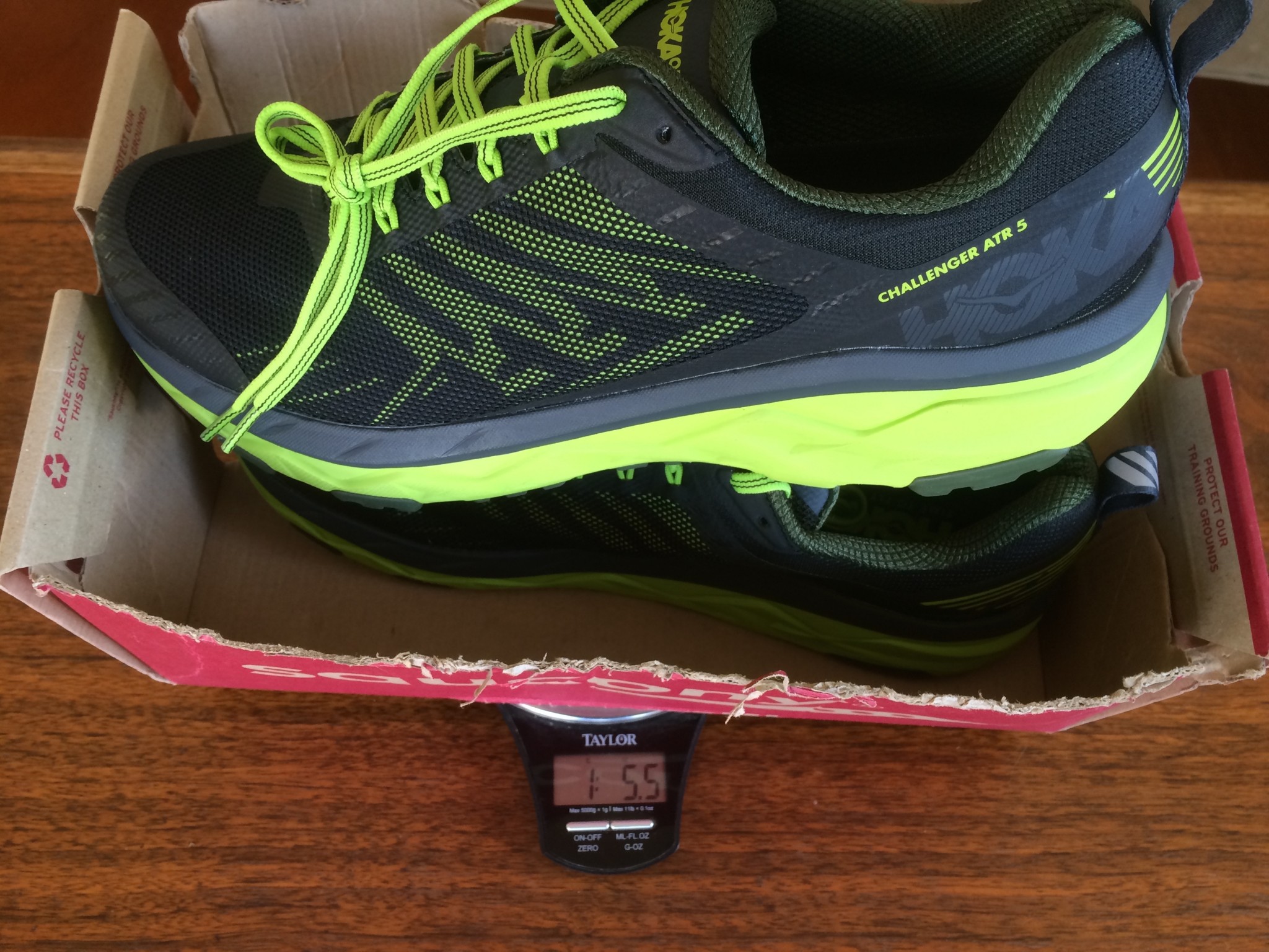 Our pair of men's size 11 shoes weighed 21.5 ounces on our independent scale, fresh out of the box. This is about .5 oz. per shoe heavier than the ATR 4 weighed.