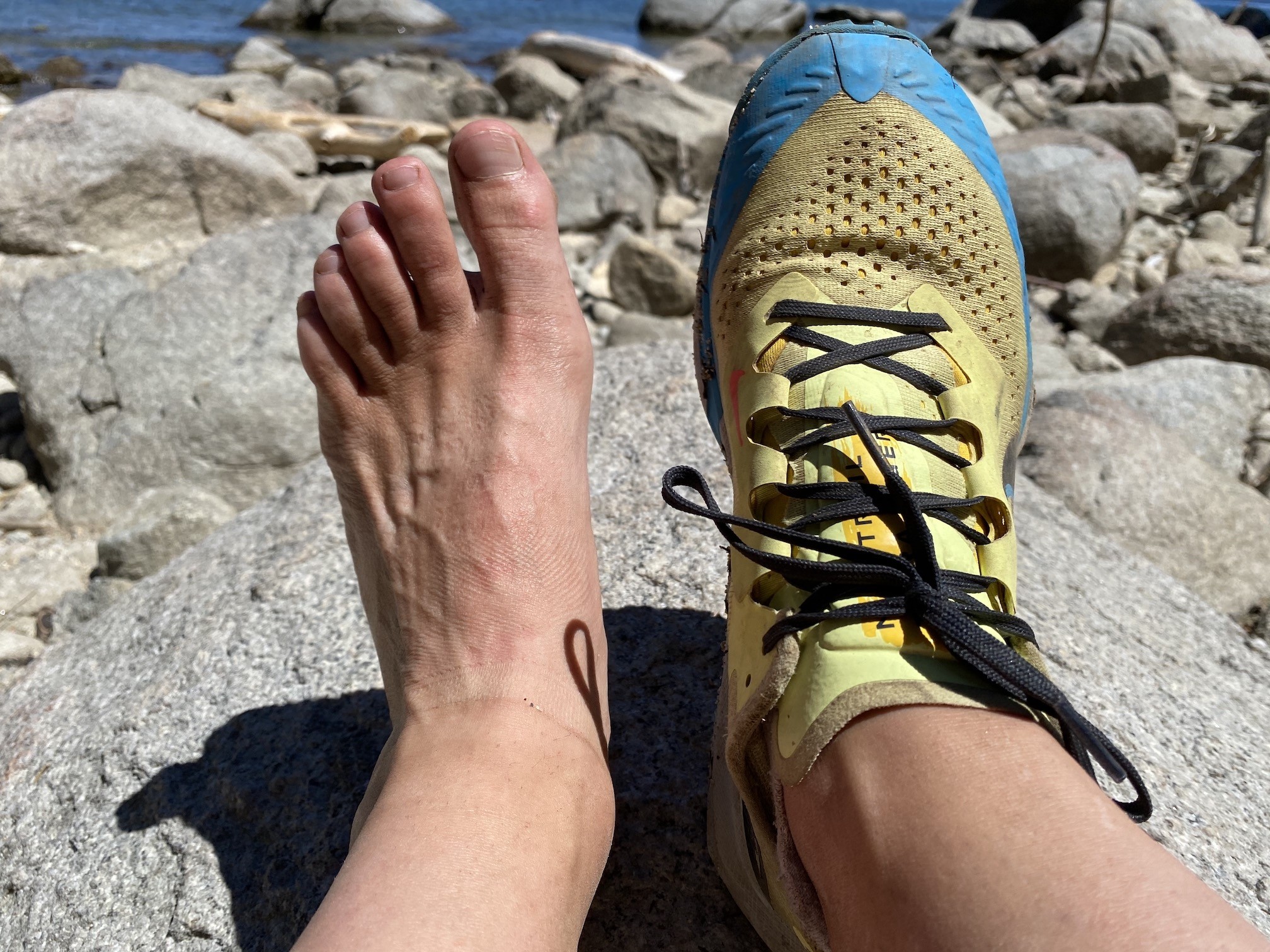 After three months and over 300 miles running with this shoe in the mountains and on beaches, we can't say that it's hugely protective. We appreciate the integrated rock plate protecting from sharp rocks, but other elements simply aren't that burly. It has only 10.5mm of Nike React cushioning on the forefoot and 14.5mm on the heel. We could still feel rocks underfoot, and our feet felt a little more worn after 10 miles in this shoe than in others. While the upper is quick to dry, it doesn't protect from fine particulates. The upper mesh traps sand between the layers, requiring us to empty the shoe out when in desert conditions. Overall, it earns a lower score in this category for its lack of protective elements.