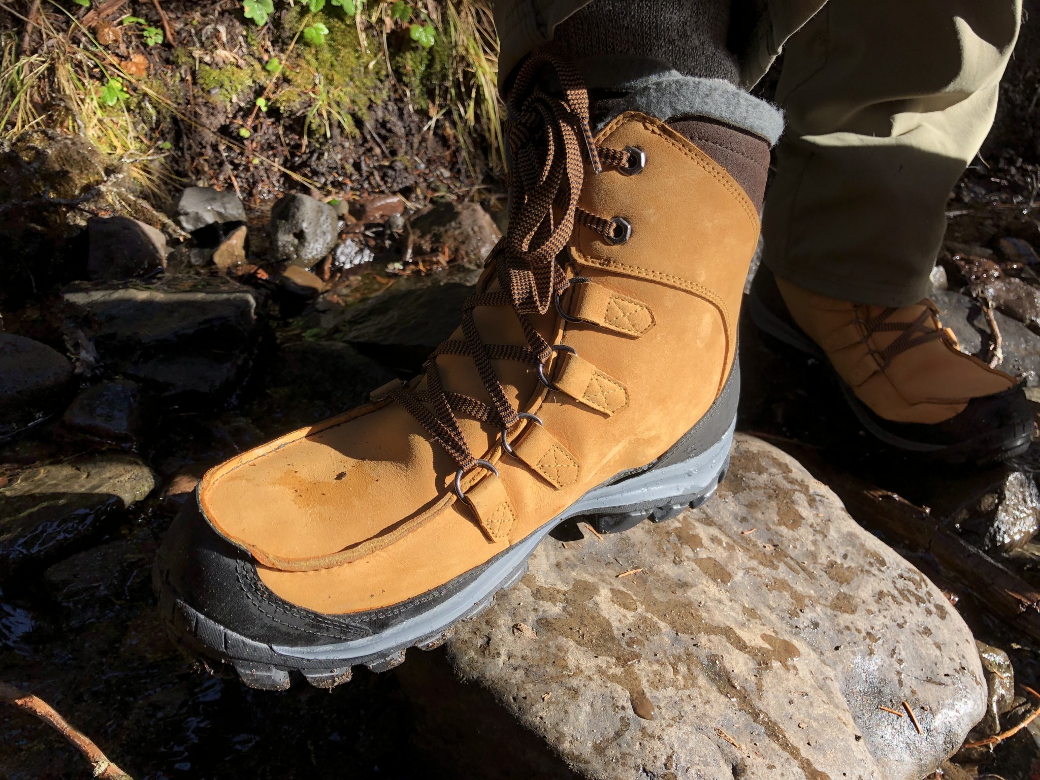 Made completely of treated leather, with no rubber bathtub above the sole as many winter boots are designed, we also didn't expect complete waterproofness out of this boot. However, we were once again surprised when it passed our water submersion test with flying colors. After standing in roughly five inches of freezing cold water for 10 minutes, there was not a hint of water inside these boots, and the waterproof coating meant that none soaked into the leather exteriors either.