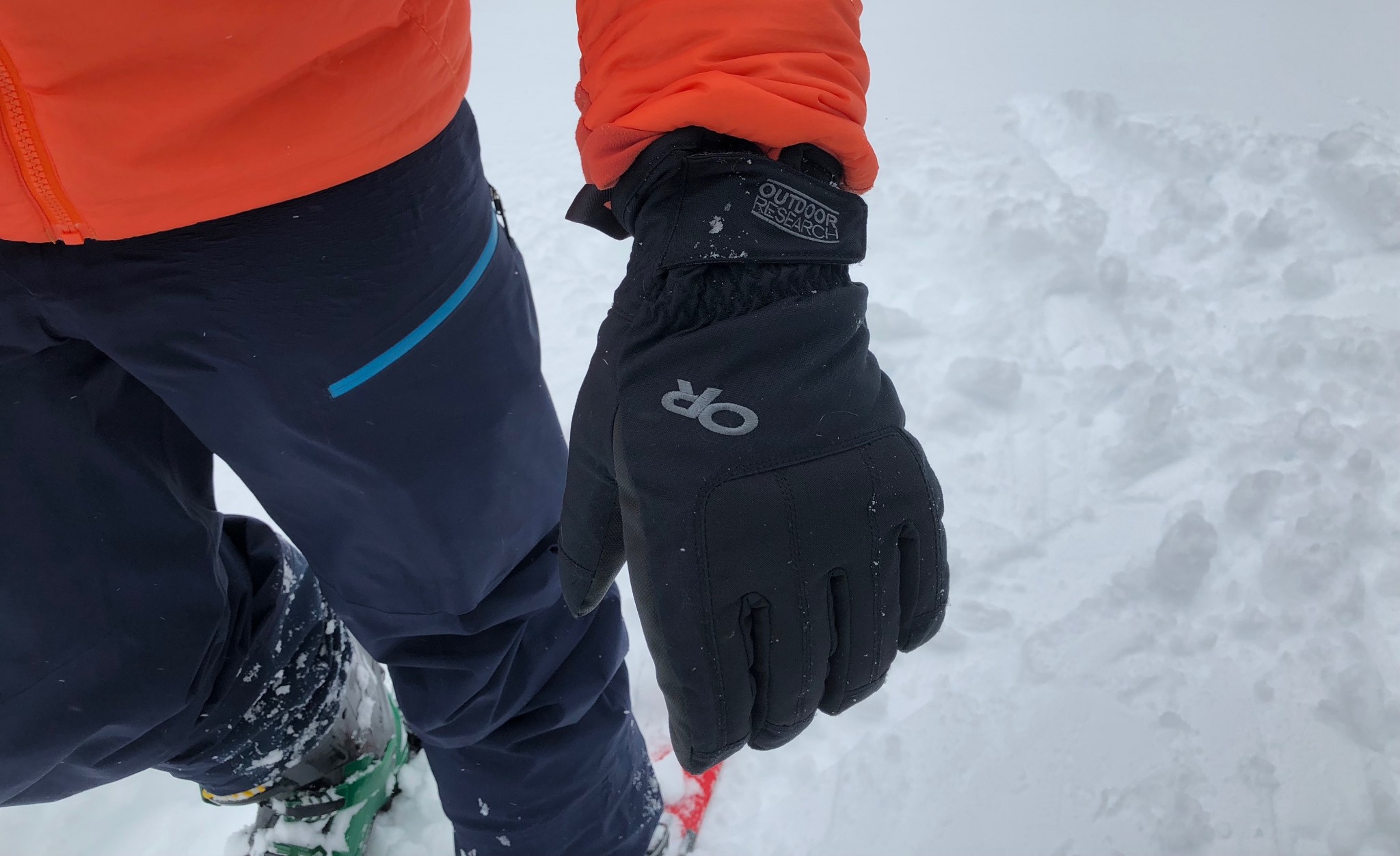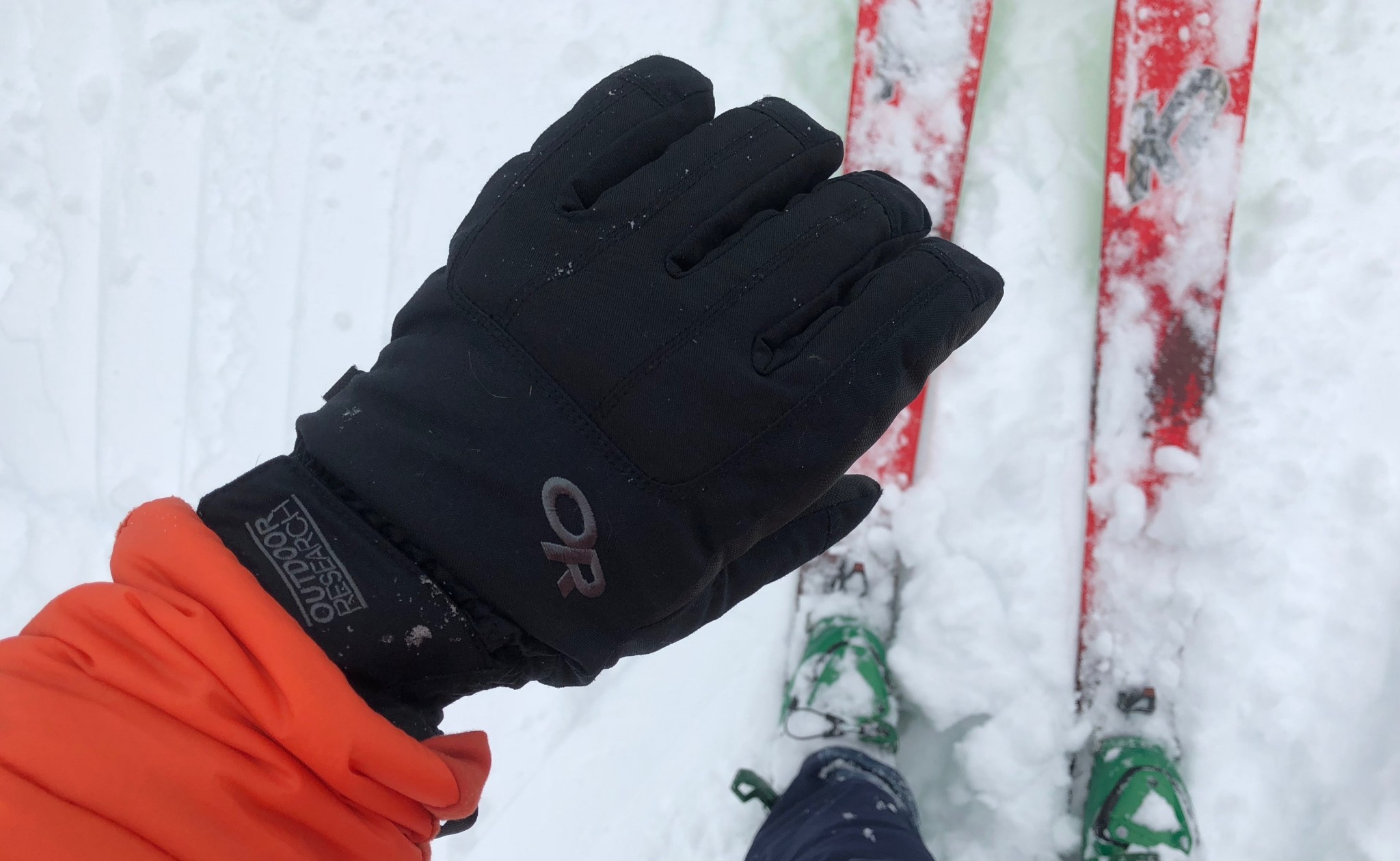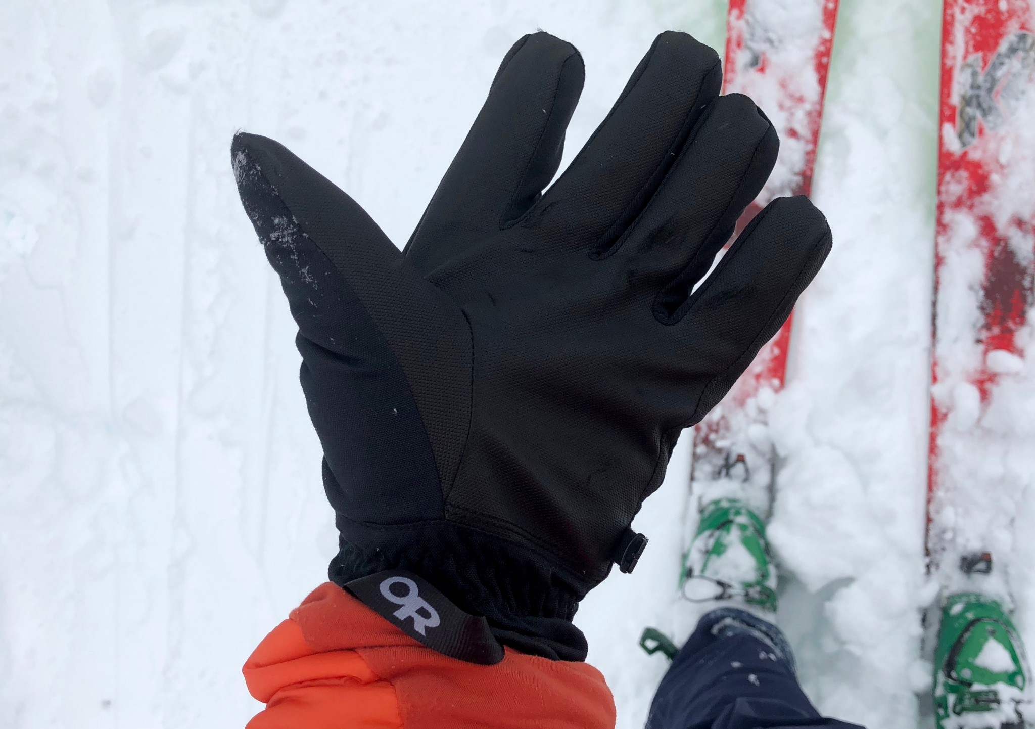The OR Riot is one of the best priced all-around ski and snowboard gloves for more moderate climates. Its only average in warmth, working well for most users down to around 10-15F but is above average in its weather resistance and dexterity when compared to similarly priced models. We also liked several small design features, like its oversized grab loops that made them easier to pull on, and soft feeling interior fabric.